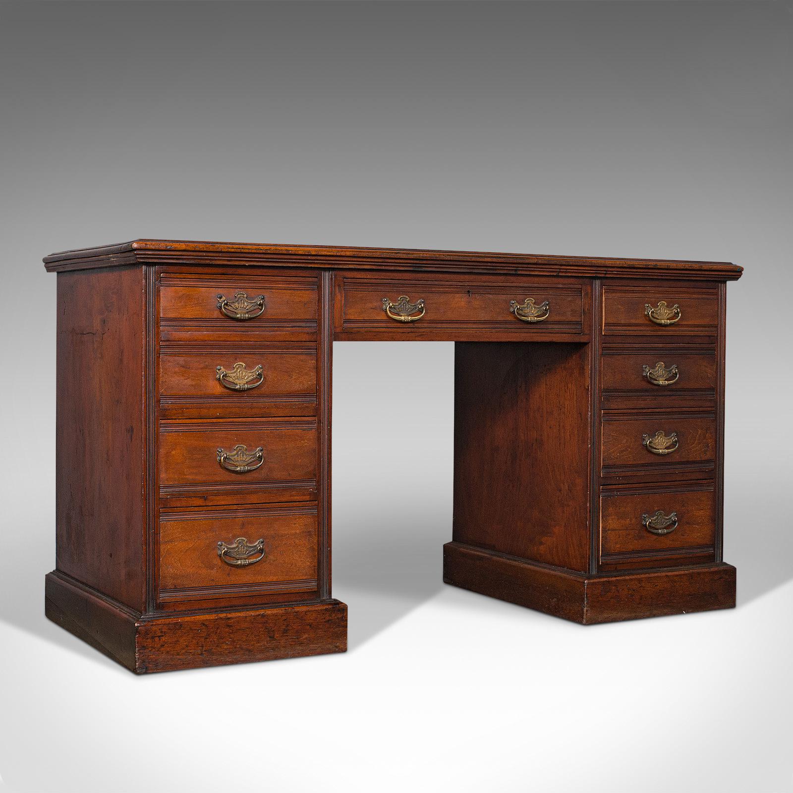 Antique Clerk's Desk, English, Walnut, Pedestal, Writing Table, Victorian c.1880