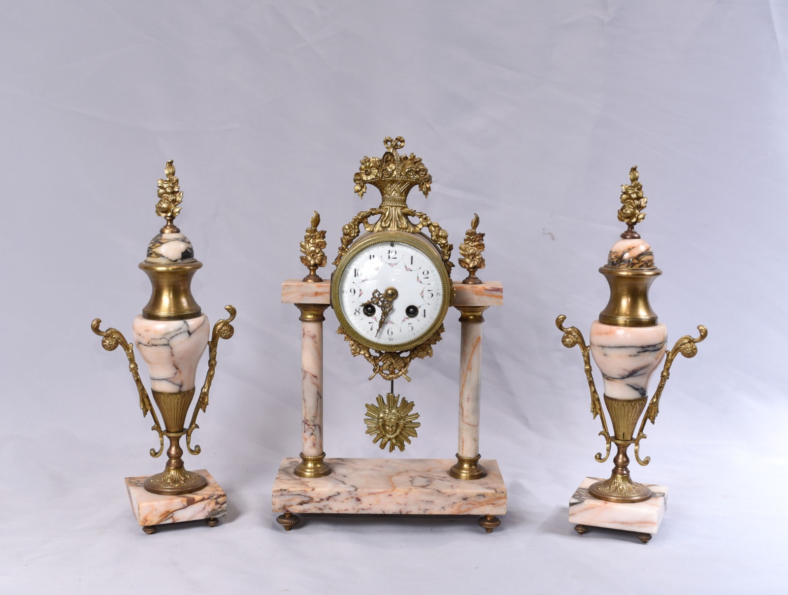 Antique Clock Set - French Mantle Gilt Clocks Garniture Set
