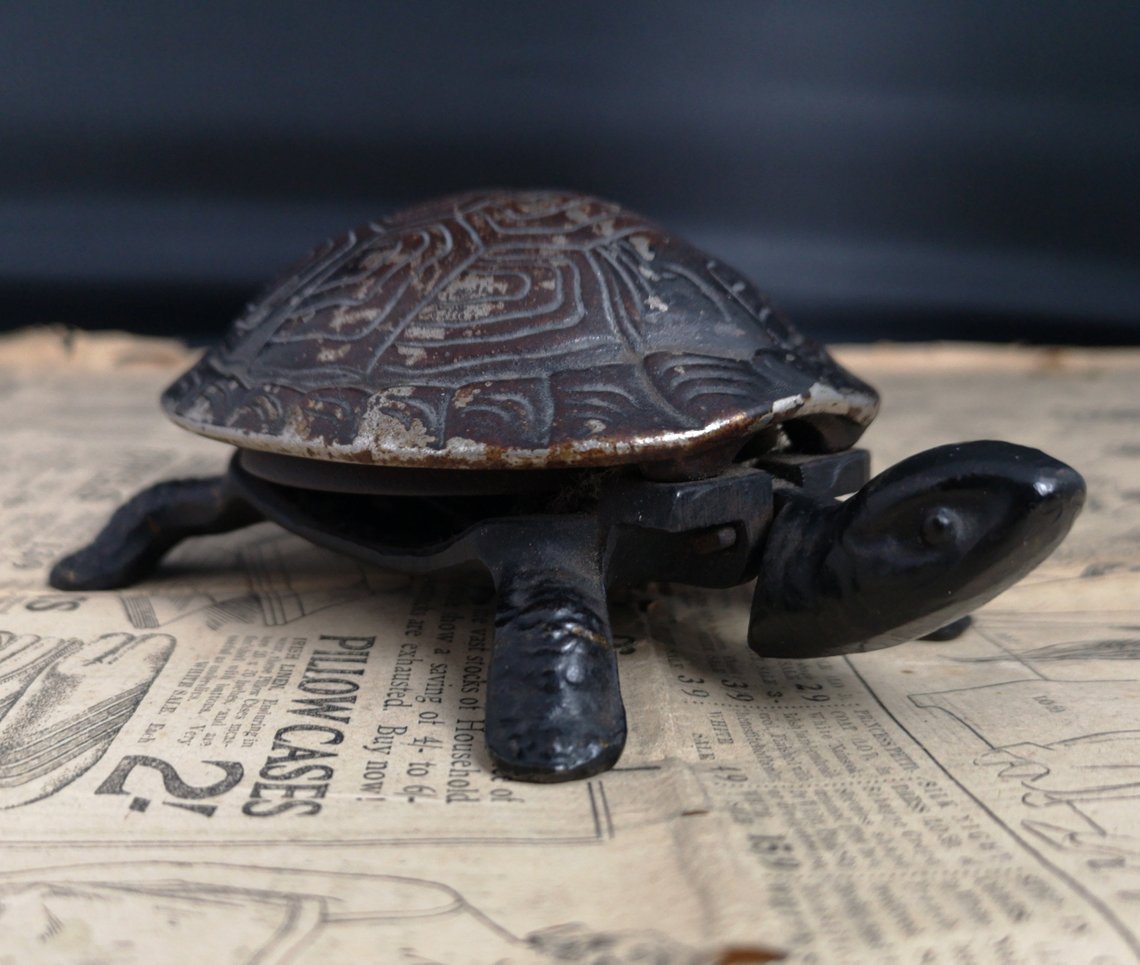 Antique Clockwork Tortoise Desk Bell, Cast Iron
