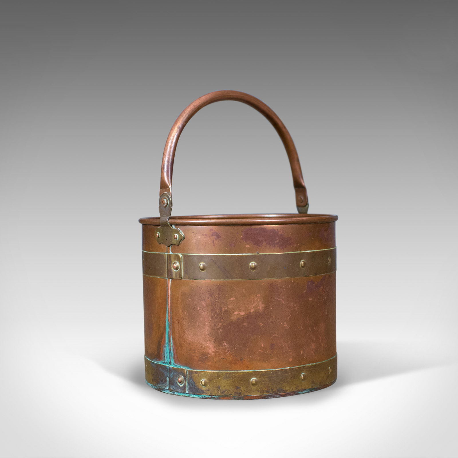 Antique Coal Bucket, English, Victorian, Fireside, Log, Scuttle c.1890