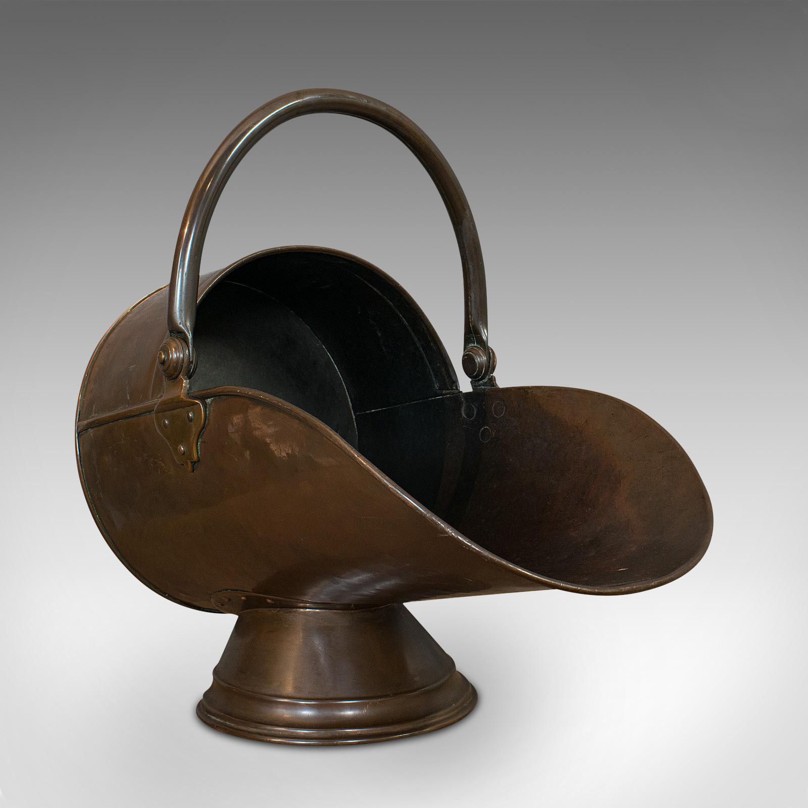 Antique Coal Scuttle, English, Copper, Brass, Fireside Bin, Victorian c.1900