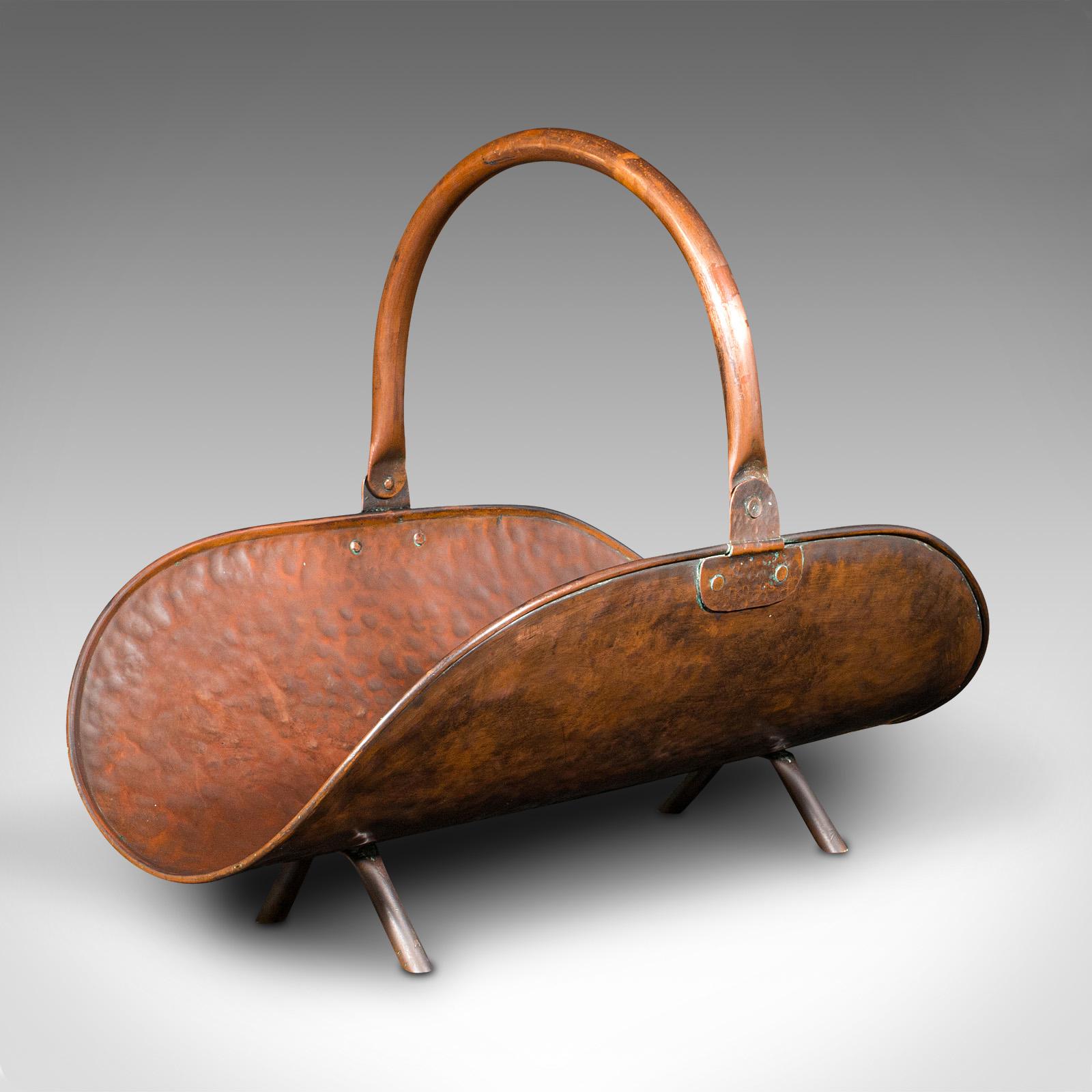 Antique Coal Trugg, English, Copper, Fireside, Fuel Scuttle, Logs, Victorian