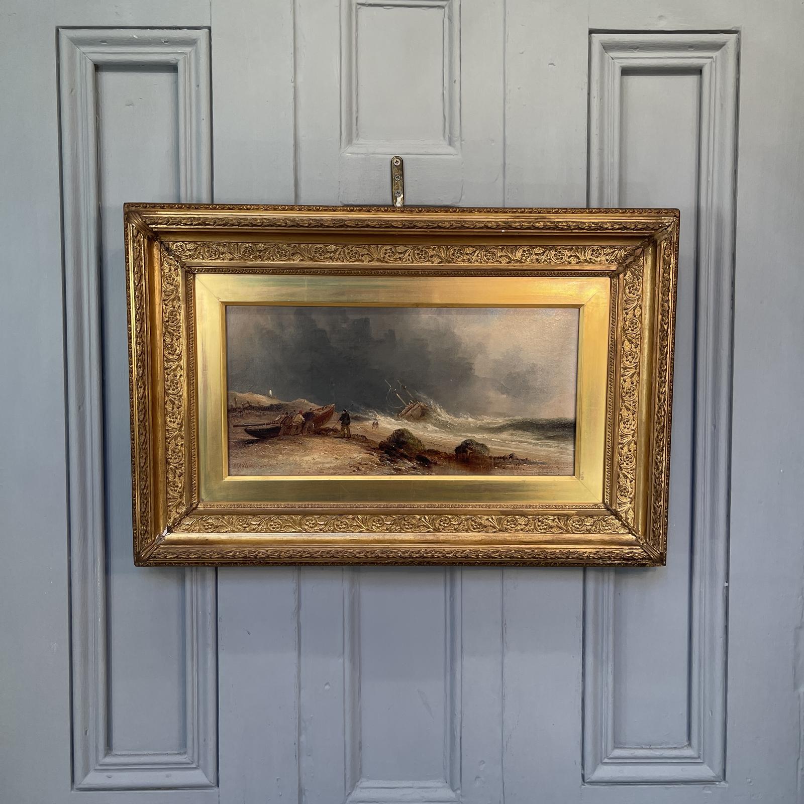 Antique Coastal Seascape Entitled Rough Weather Near Hastings Signed W Wall (1 of 2) (1 of 10)