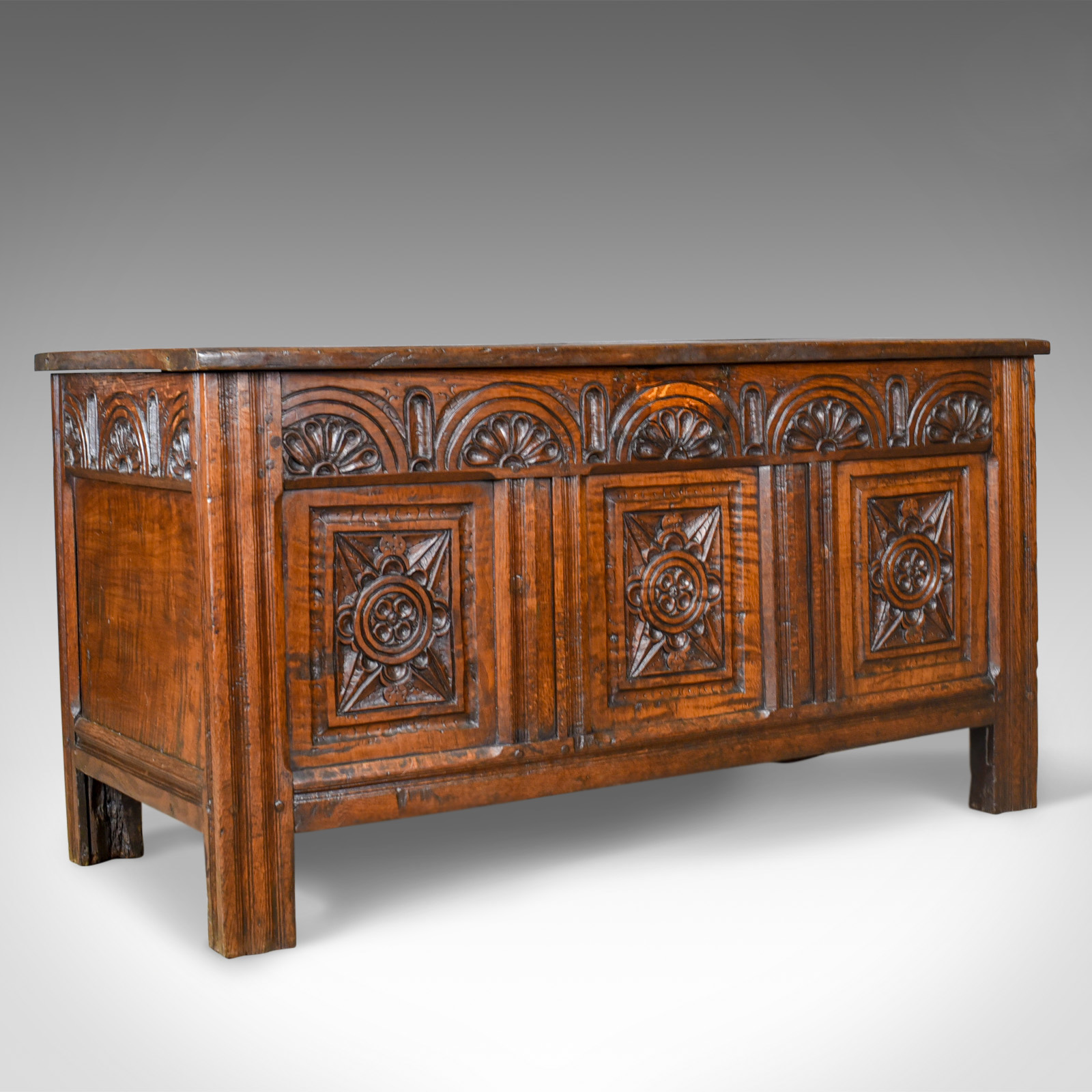 Antique Coffer, English Oak Joined Chest, William III, Queen Anne c.1700