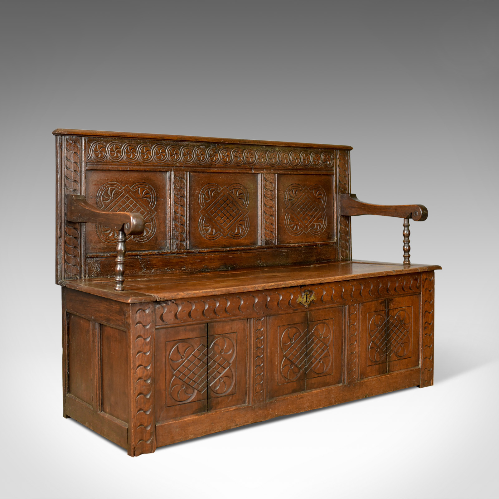 Antique Coffer Settle, English, Oak, Hall, Bench, Seat c.1700 (1 of 1)