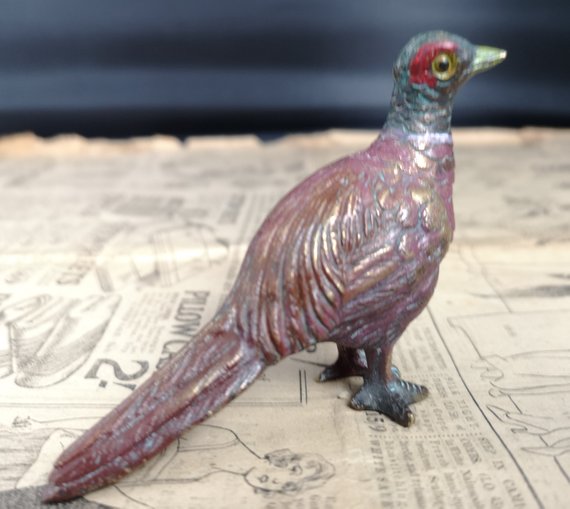 Antique Cold Painted Bronze Pheasant, Miniature Game Bird Figure