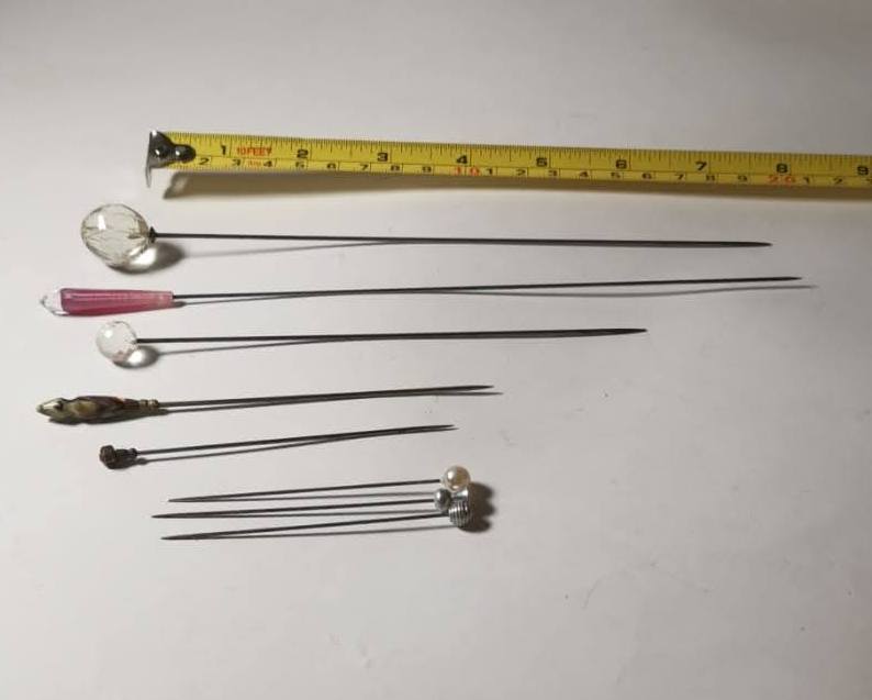 Antique Collection of 8 Hat Pins - Different Lengths c.1900