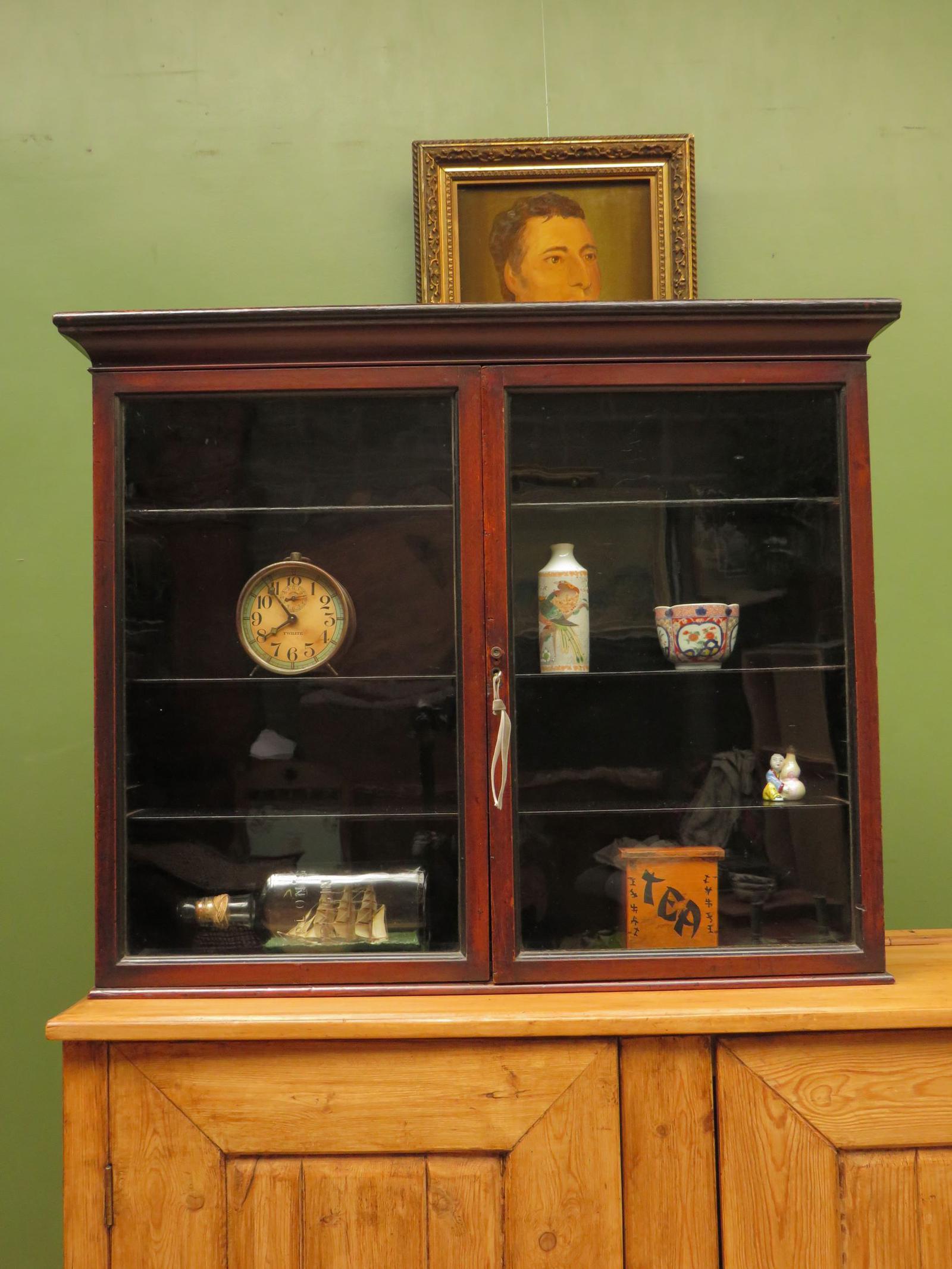 Antique Collectors Wall Mounted Cabinet with Glazed Doors and Key