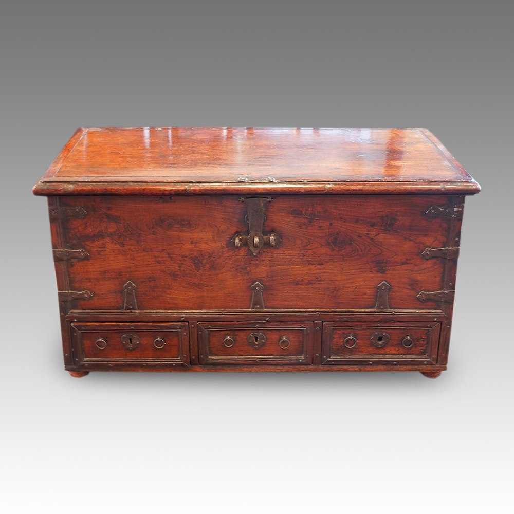 Antique Colonial Hardwood Iron Bound Mule Chest (1 of 1)