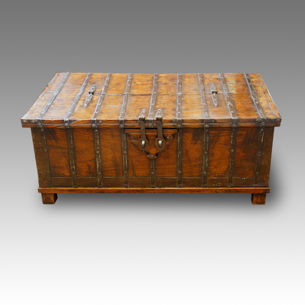 Antique Colonial Hardwood Iron Bound Trunk (1 of 1)