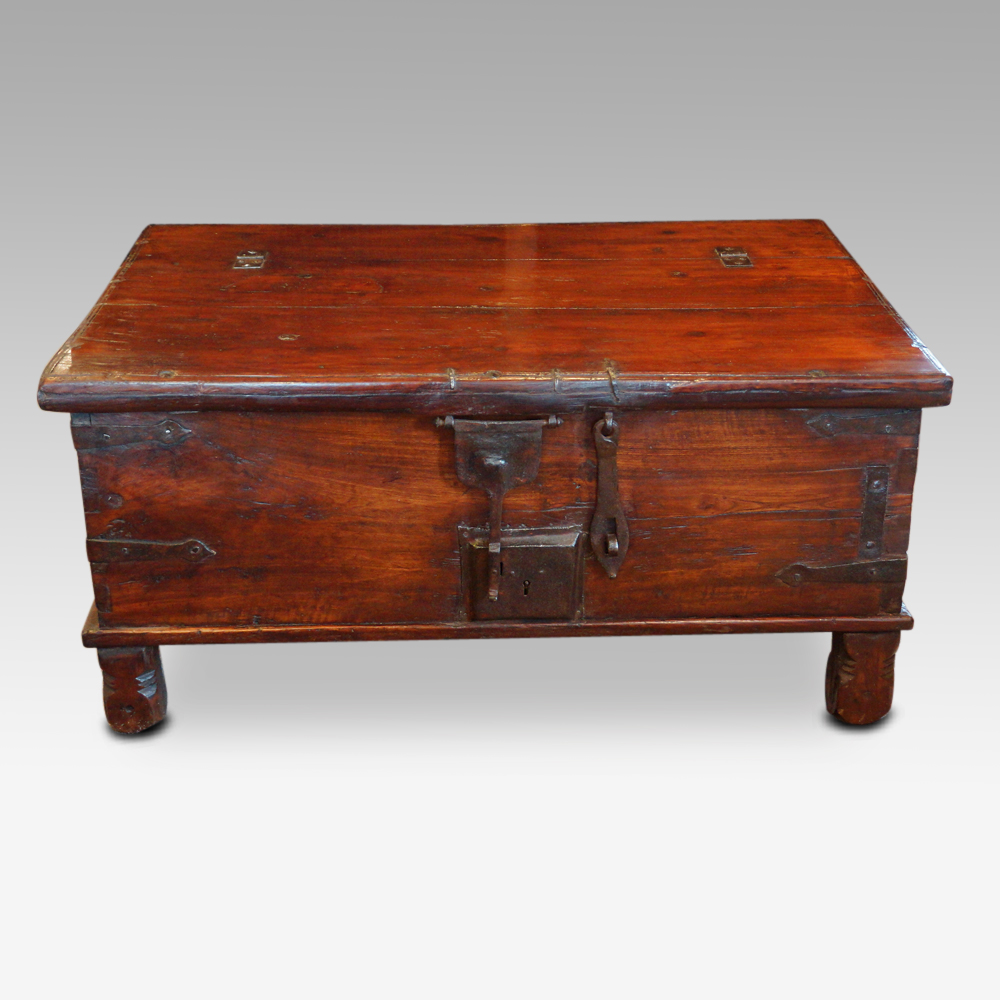Antique Colonial Teak Brass Cornered Trunk (1 of 1)