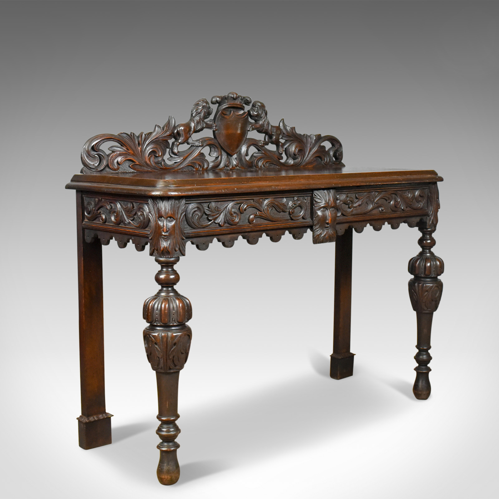 Antique Console Table, Mid 19th Century, Scottish, Oak, Carved, Side c.1860
