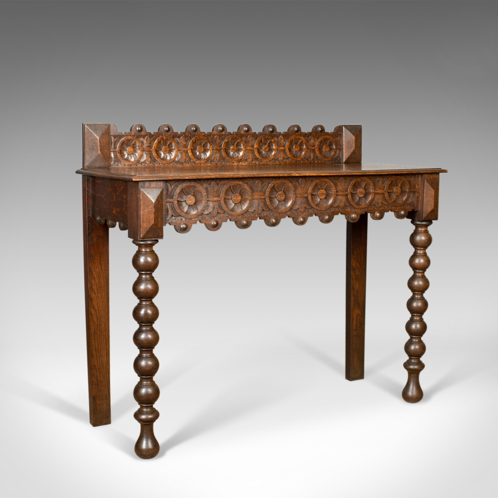 Antique Console Table, Scottish, Oak, Carved, 19th Century c.1890