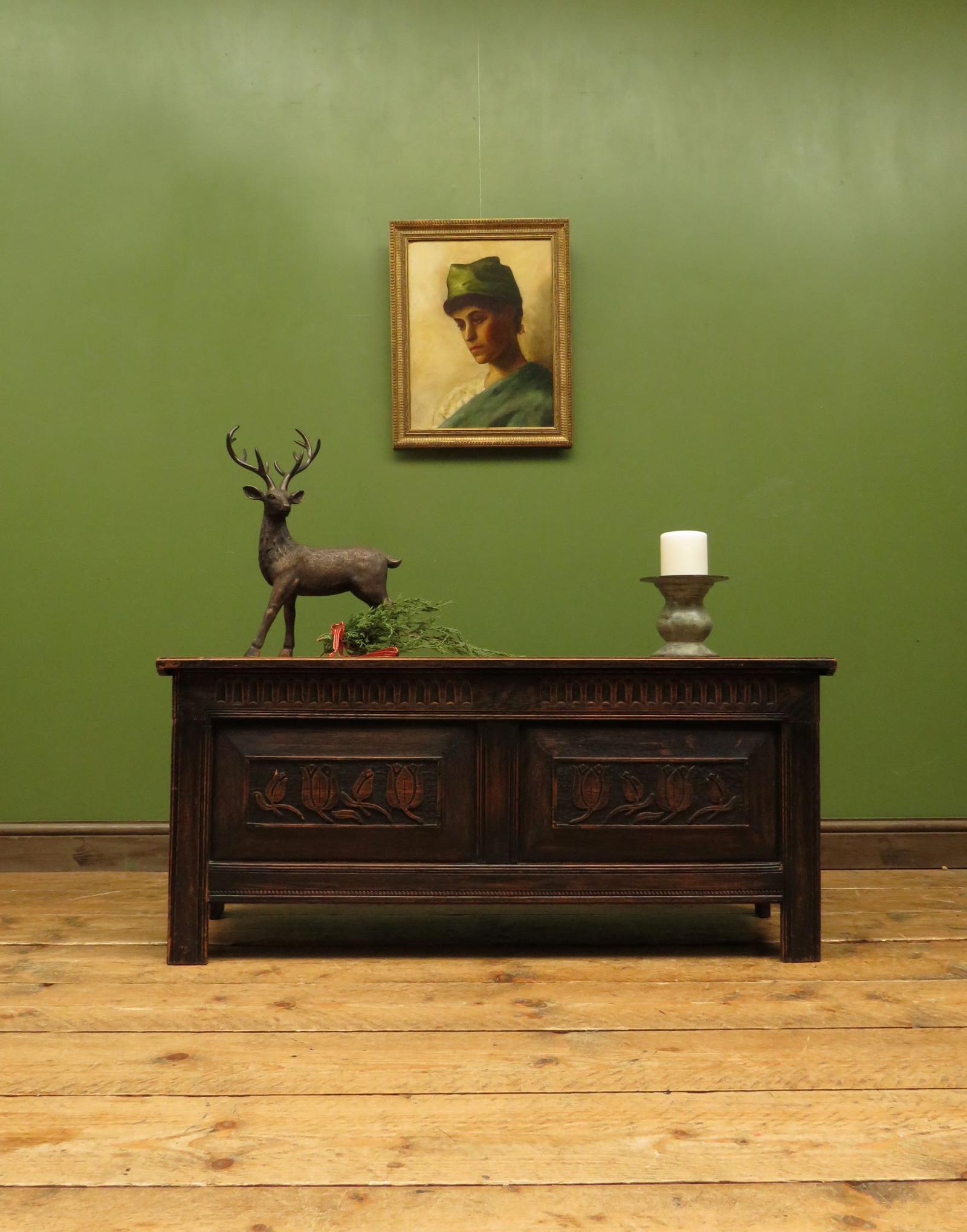 Antique Continental Carved Oak Coffer, Blanket Box, Hall Storage Chest for shoes