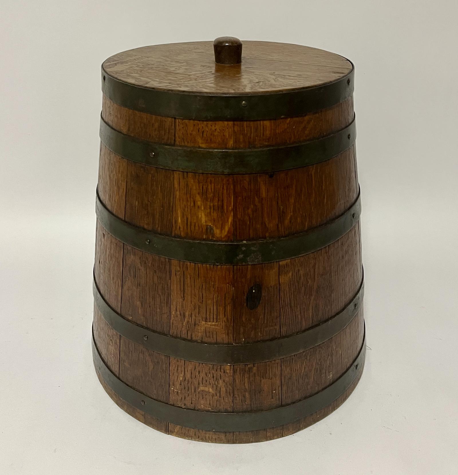 A lovely antique oak barrel dating from the late 19th / early 20th century. Likely used for dry storage for oats or flour. It is very well made with riveted metal strapping and it comes with its original lid.