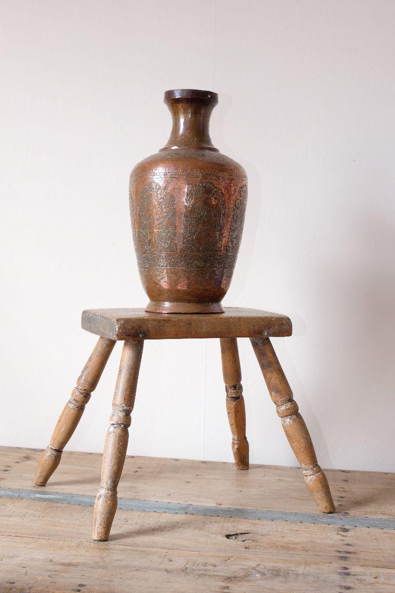 Antique Copper Ewer Depicted with People, Birds, Animals & Flowers