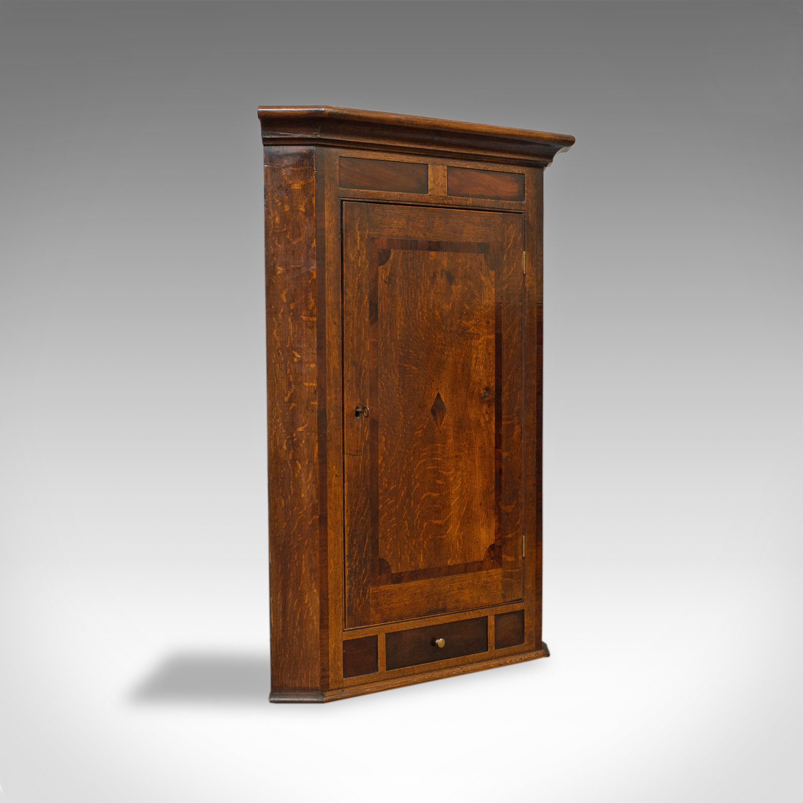 Antique Corner Cabinet, English, Georgian, Oak, Hanging, Wall Cupboard c.1780