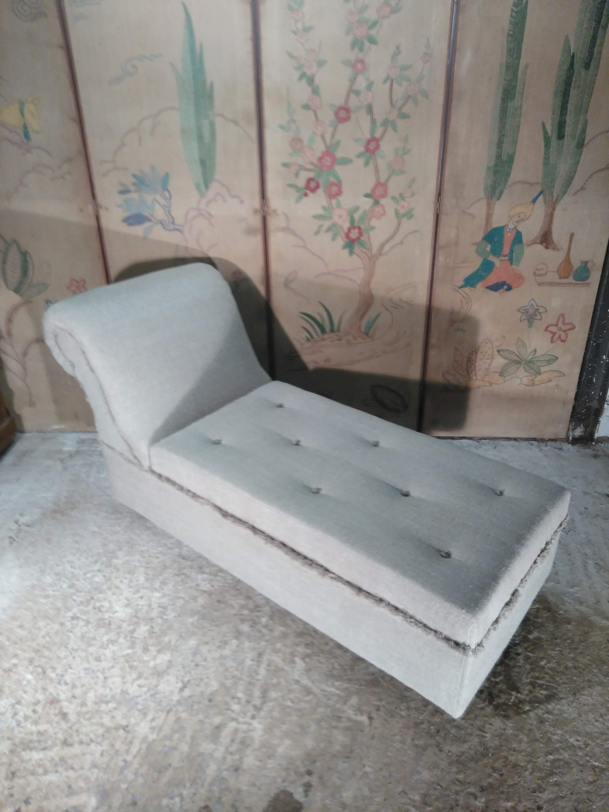 Antique Country House Chaise with Storage in Seat, Newly Upholster in Raw Russian Linen in a Unique Style,