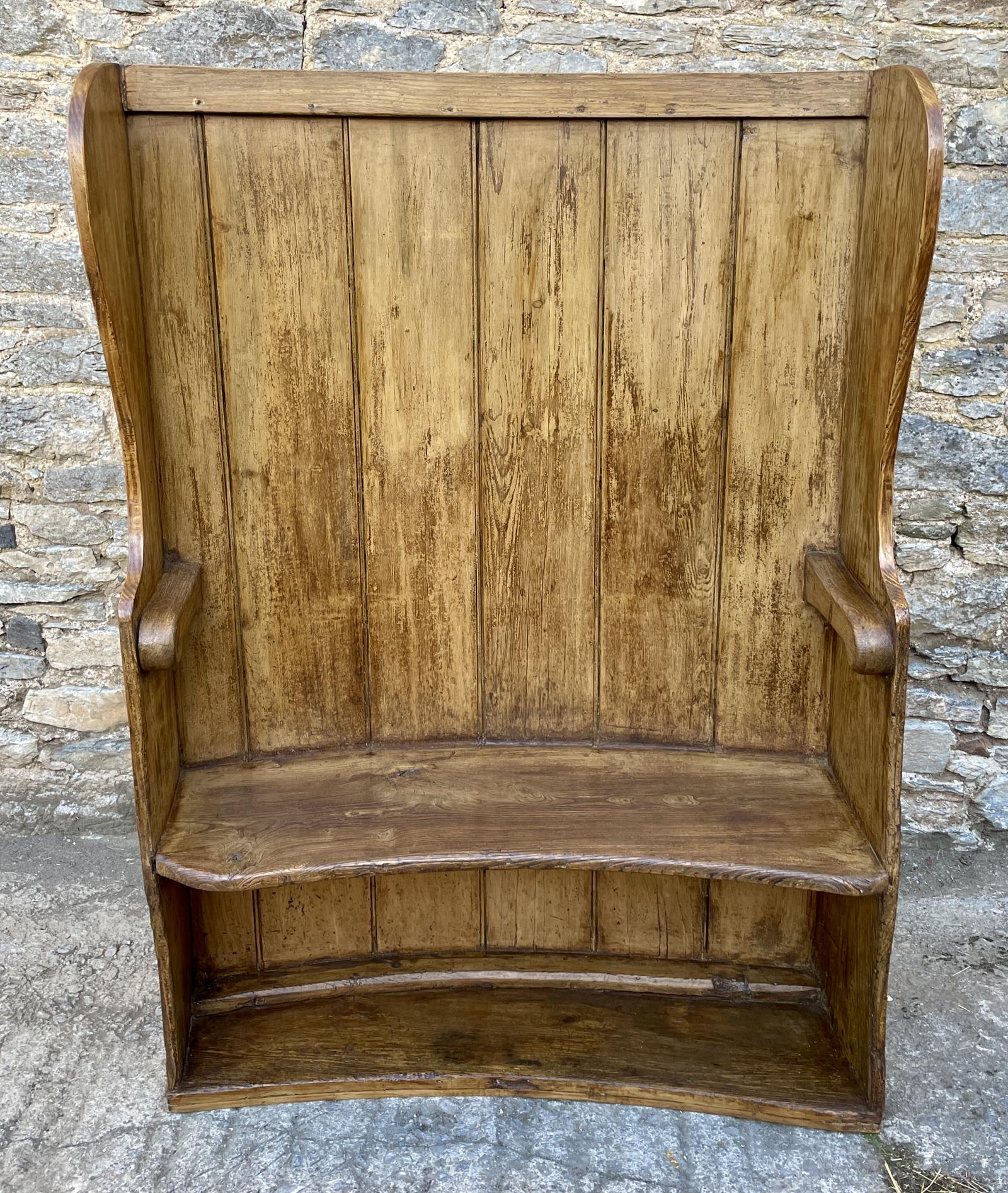 Antique Curved Wing Back Pine and Elm Settle (1 of 26)