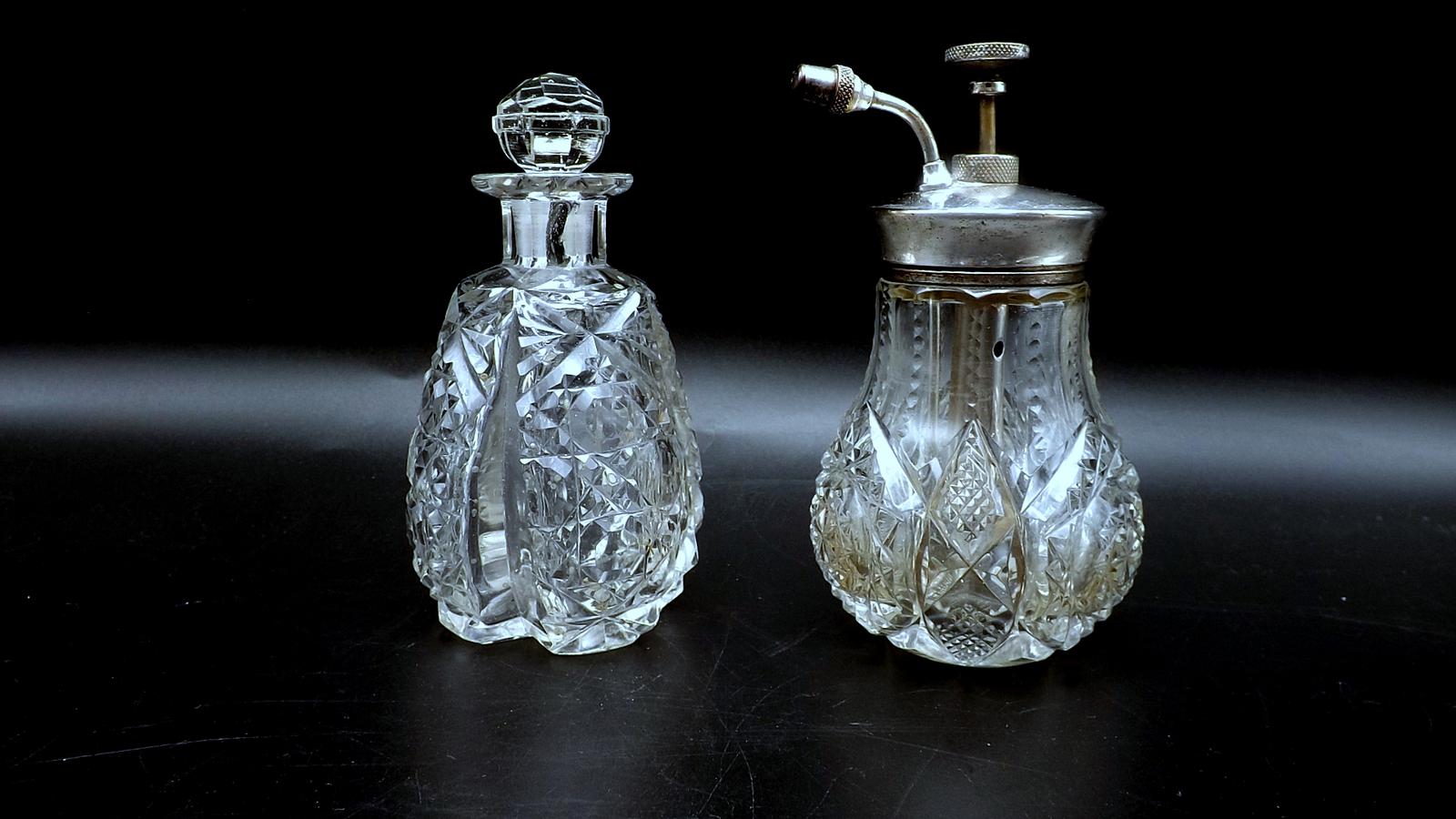 Antique Cut Glass Perfume Bottle & Pump Atomiser