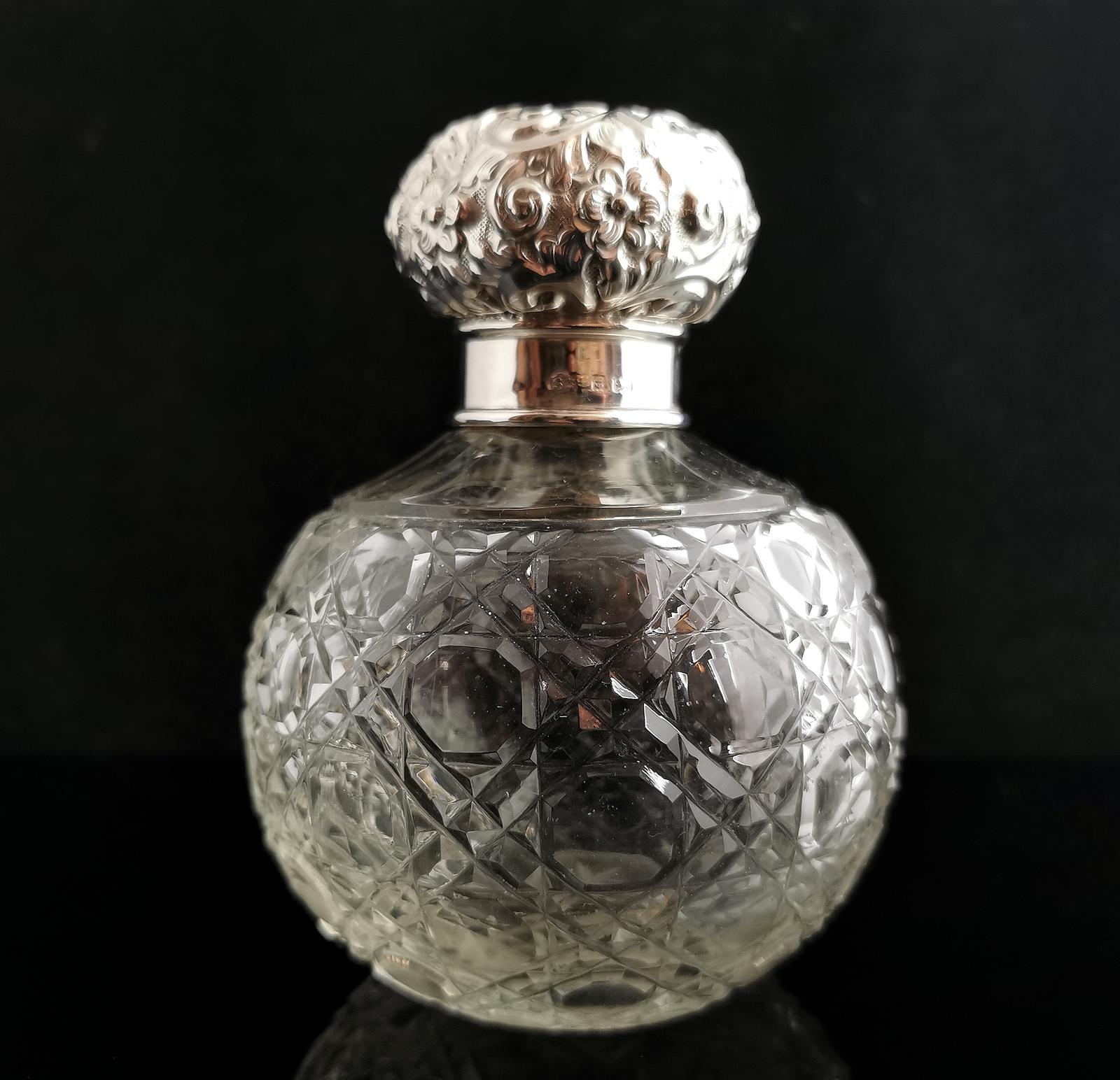 Antique Cut Glass Scent Bottle, Sterling Silver, Edwardian