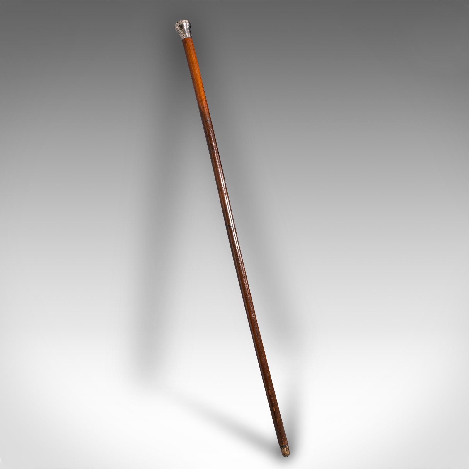 Antique Dandy's Walking Cane, English, Fruitwood Stick, Silver Handle, Victorian