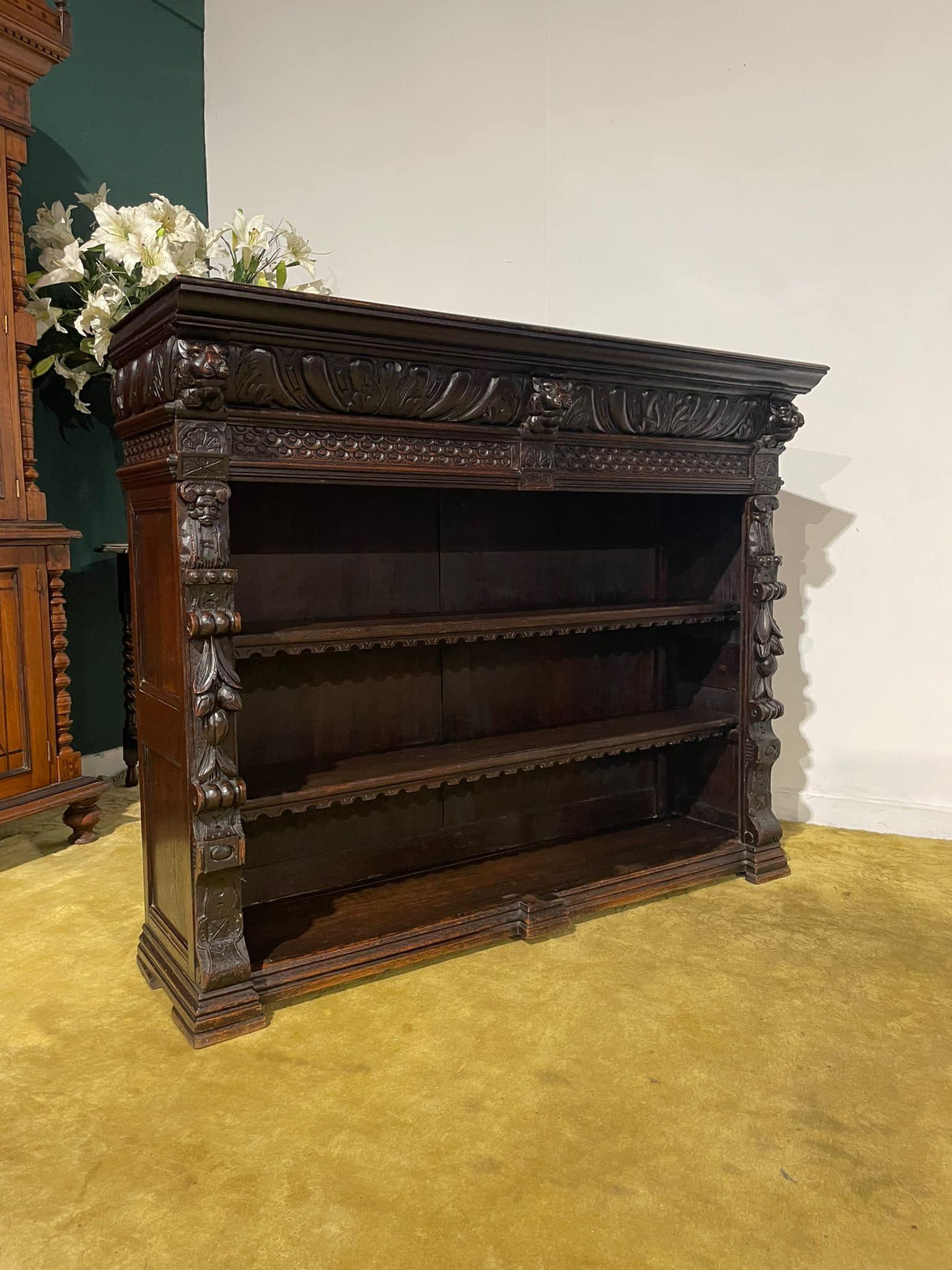 Antique Dark Oak Ornate Bookcase (1 of 16)