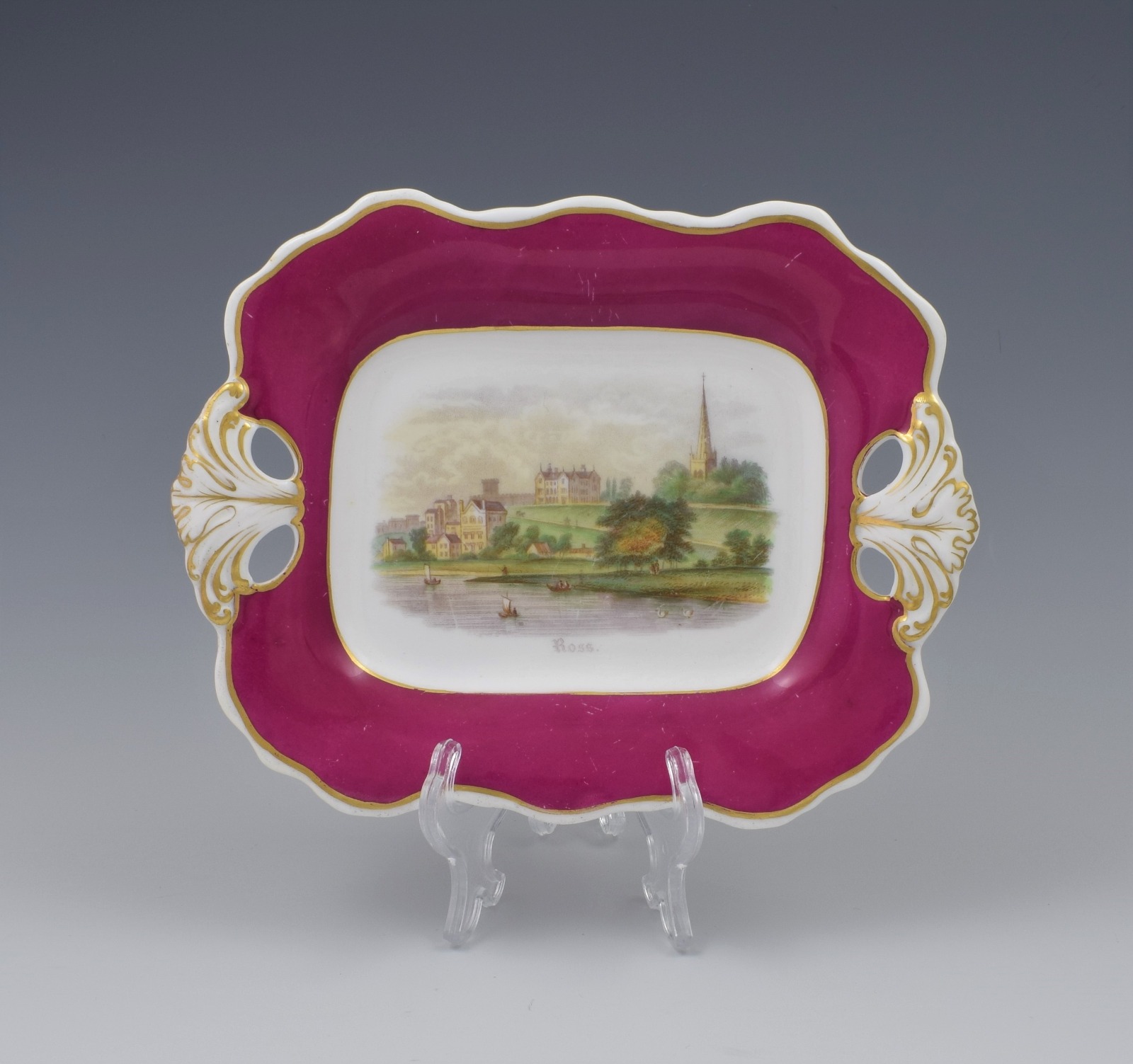 Antique Davenport Porcelain Dessert Dish View of Ross On Wye C.1840
