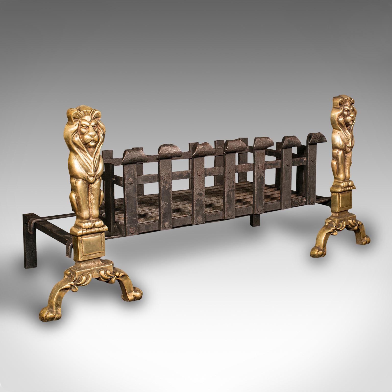 Antique Decorative Fire Basket, English, Fireside Grate Set, Andirons, Victorian