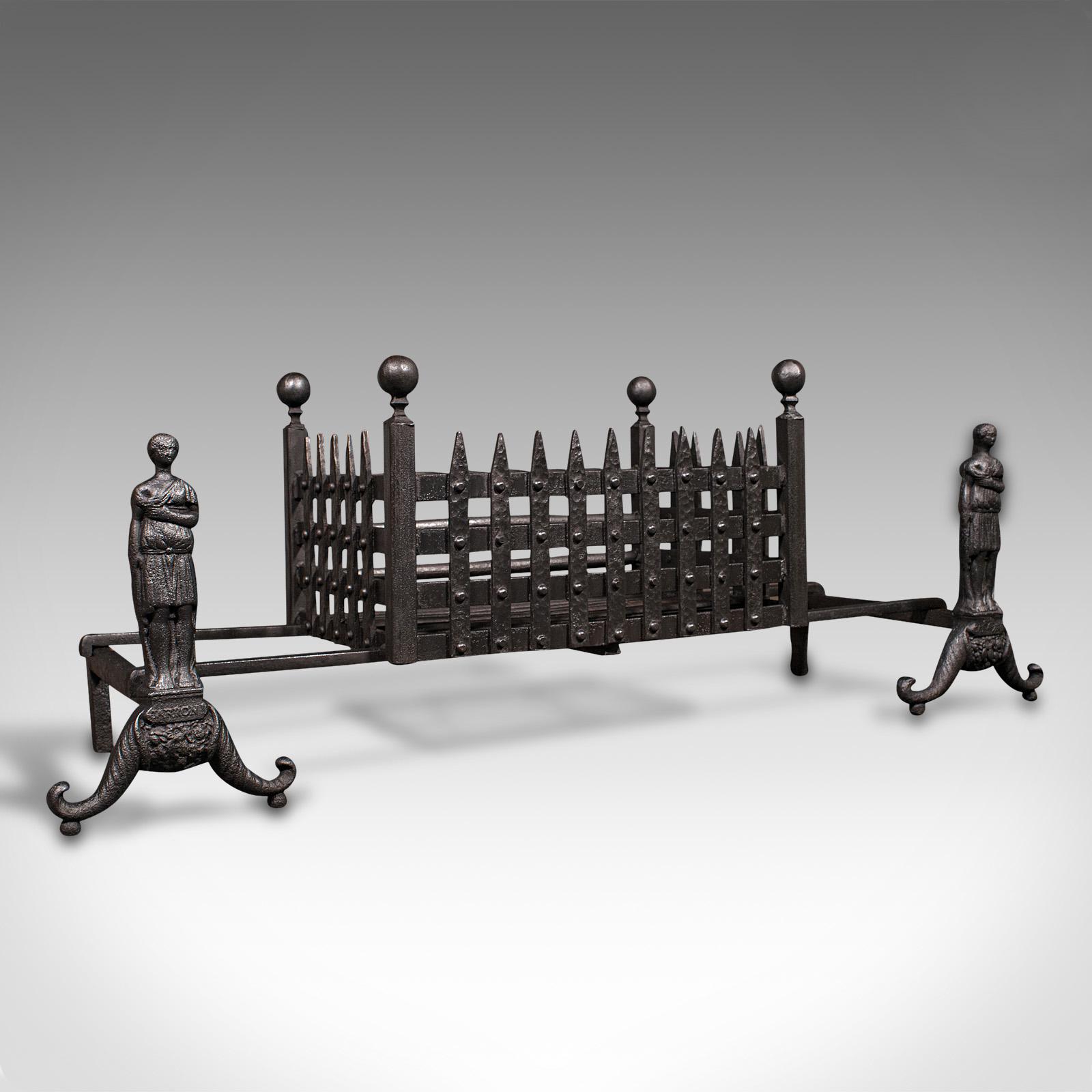 Antique Decorative Fire Basket, English, Iron, Fireplace, Andirons, Victorian