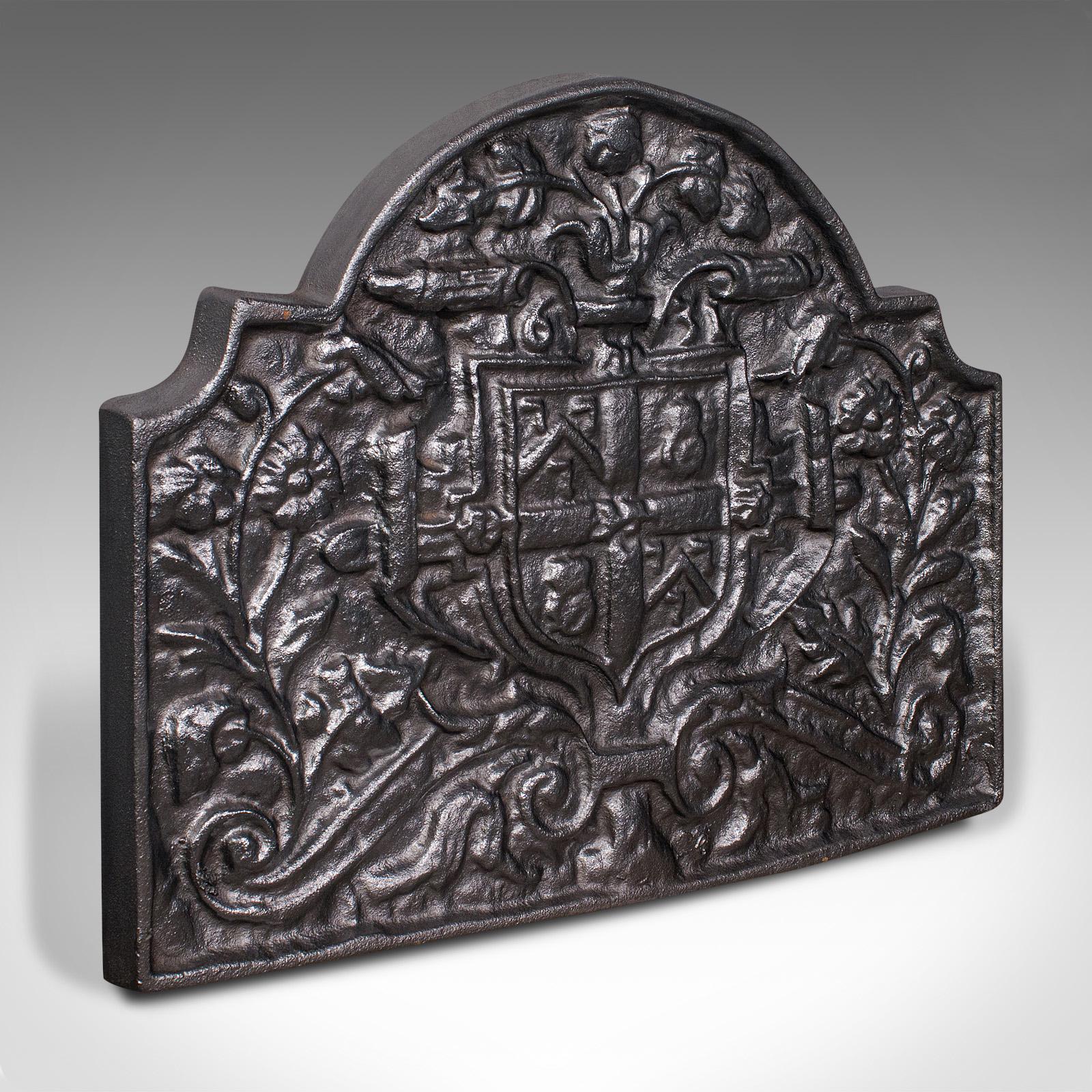 Antique Decorative Fireback, English, Cast Iron, Fireplace, Heraldic, Victorian