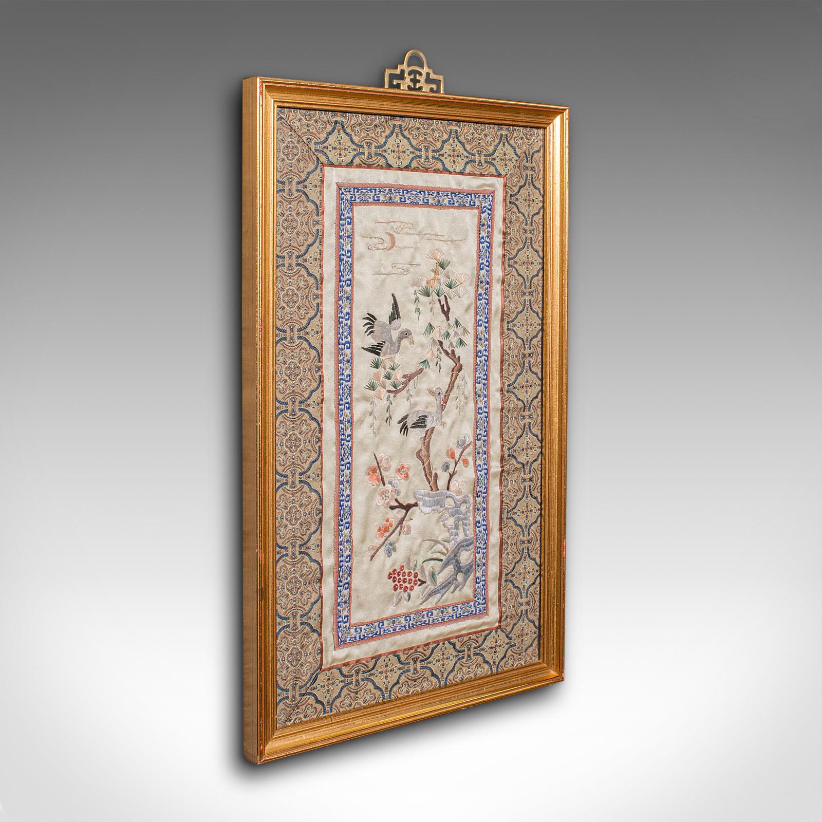 Antique Decorative Panel, Japanese, Framed, Silk Cotton Embroidery, Victorian