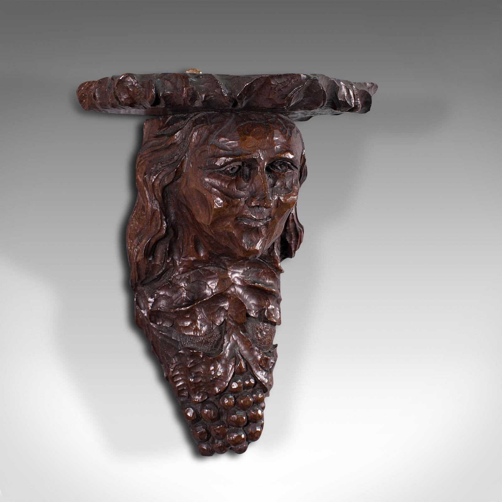 Antique Decorative Sconce, American, Carved Oak, Figure, Candle Bracket c.1800