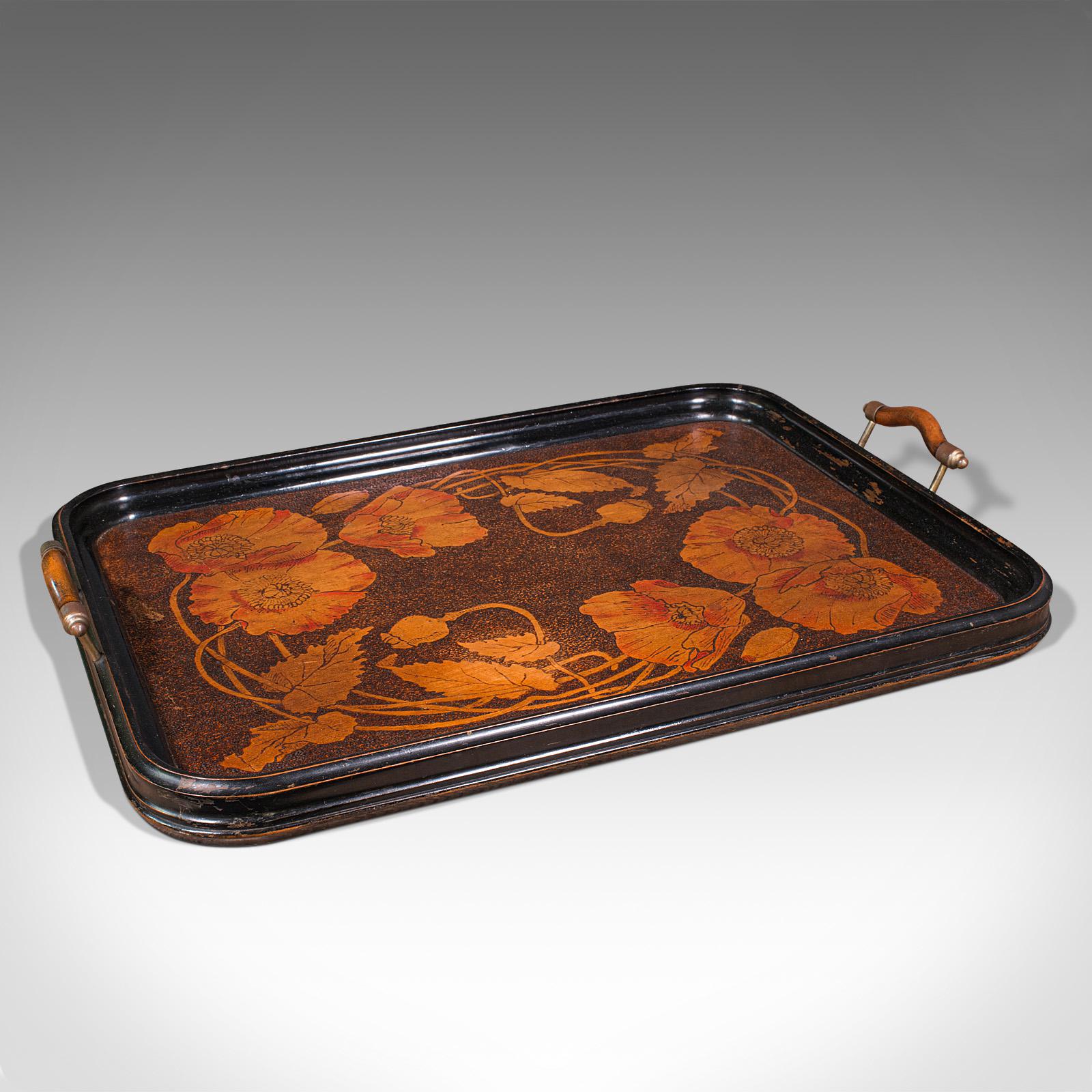 Antique Decorative Serving Tray, English, Beech, Art Nouveau, Edwardian, 1909