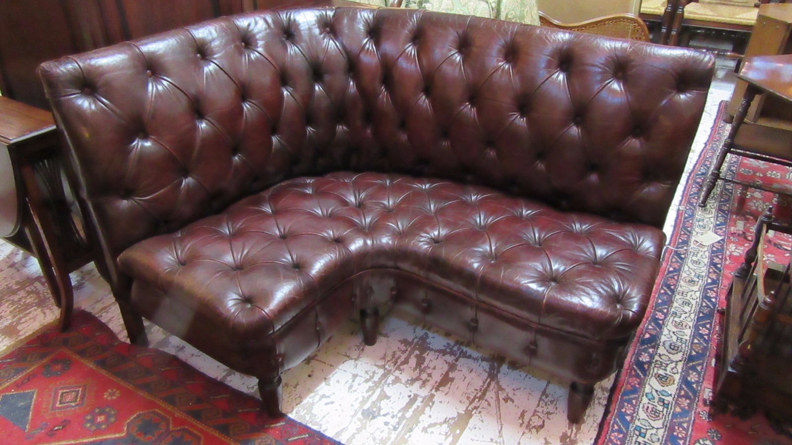 Antique Deep Buttoned Leather Free Standing Corner Sofa c.1900