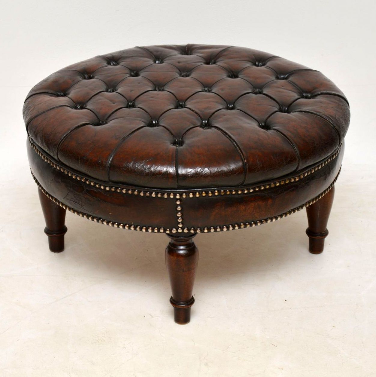 Antique Deep Buttoned Leather & Mahogany Stool (1 of 1)