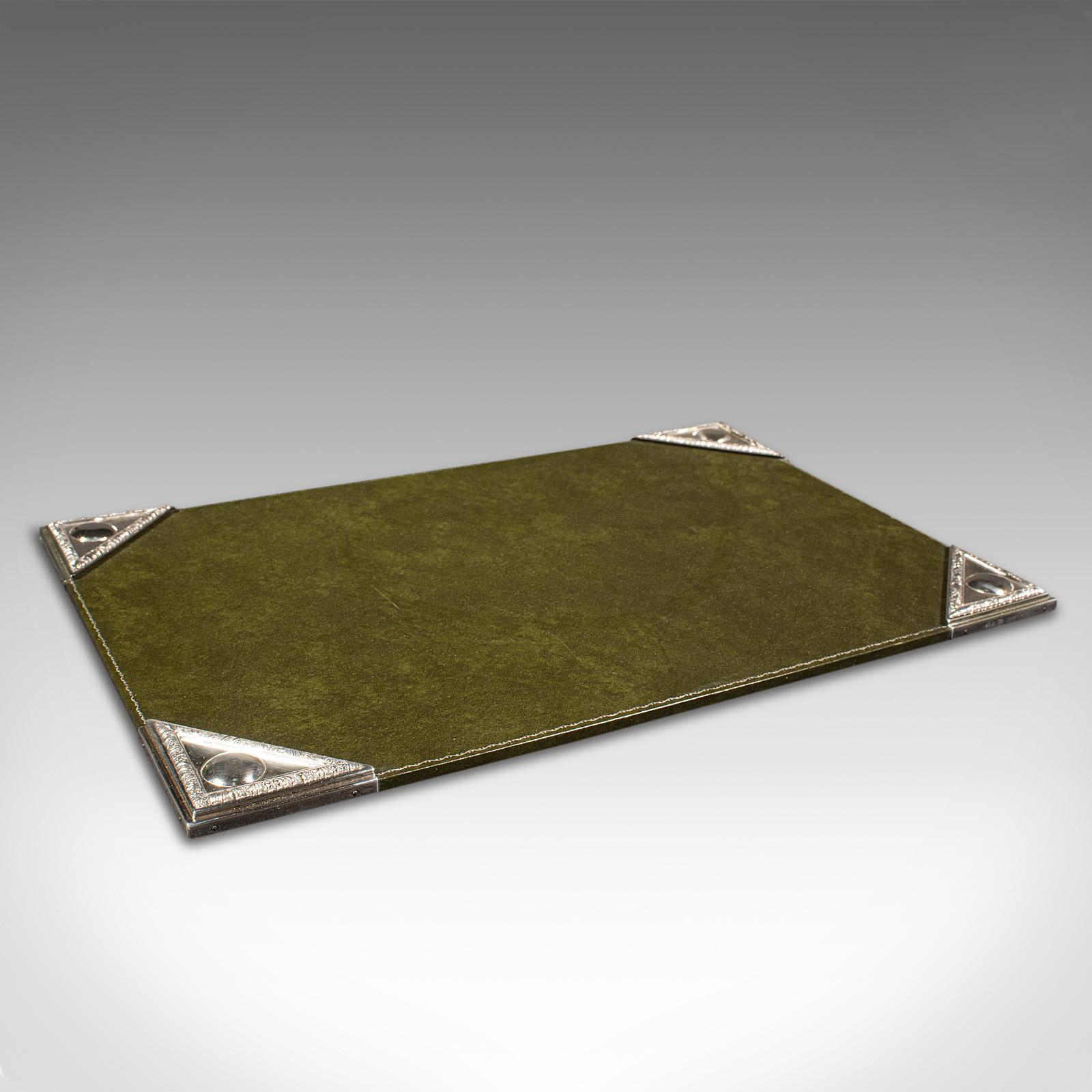 Antique Desk Pad, English, Leather, Silver Plate, Writing Blotter c.1920