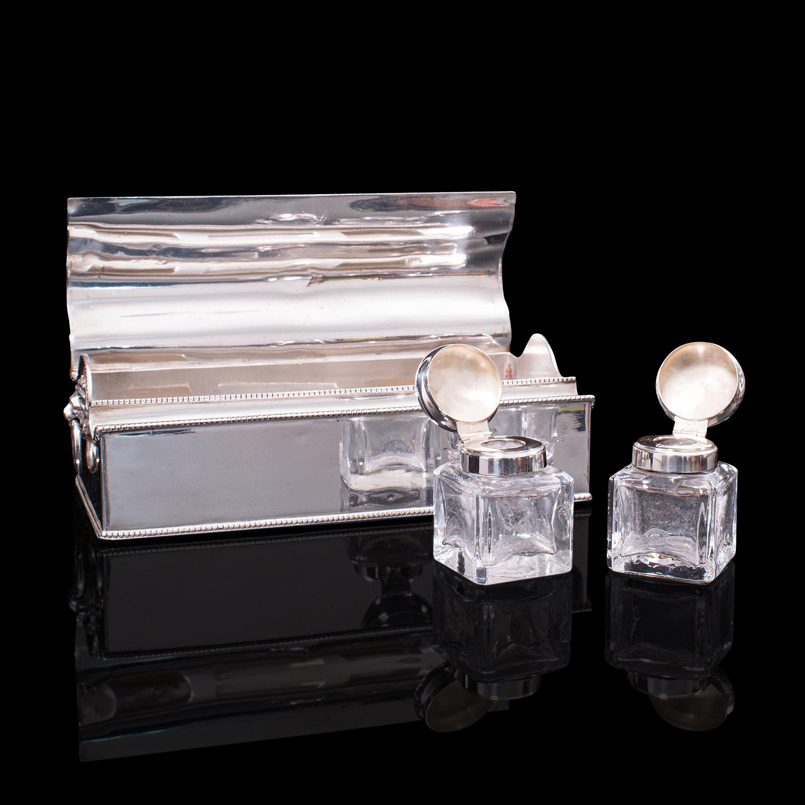 Antique Desk Stand, English, Correspondence Box, Inkwells, Victorian c.1900