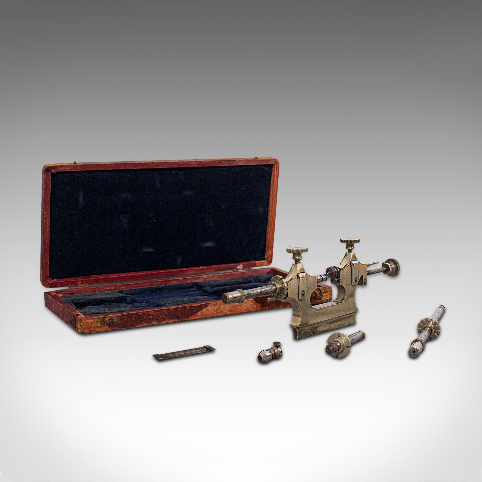 Antique Desktop Watchmaker's Lathe, Swiss, Brass, Jacot, Craftsman's Tool