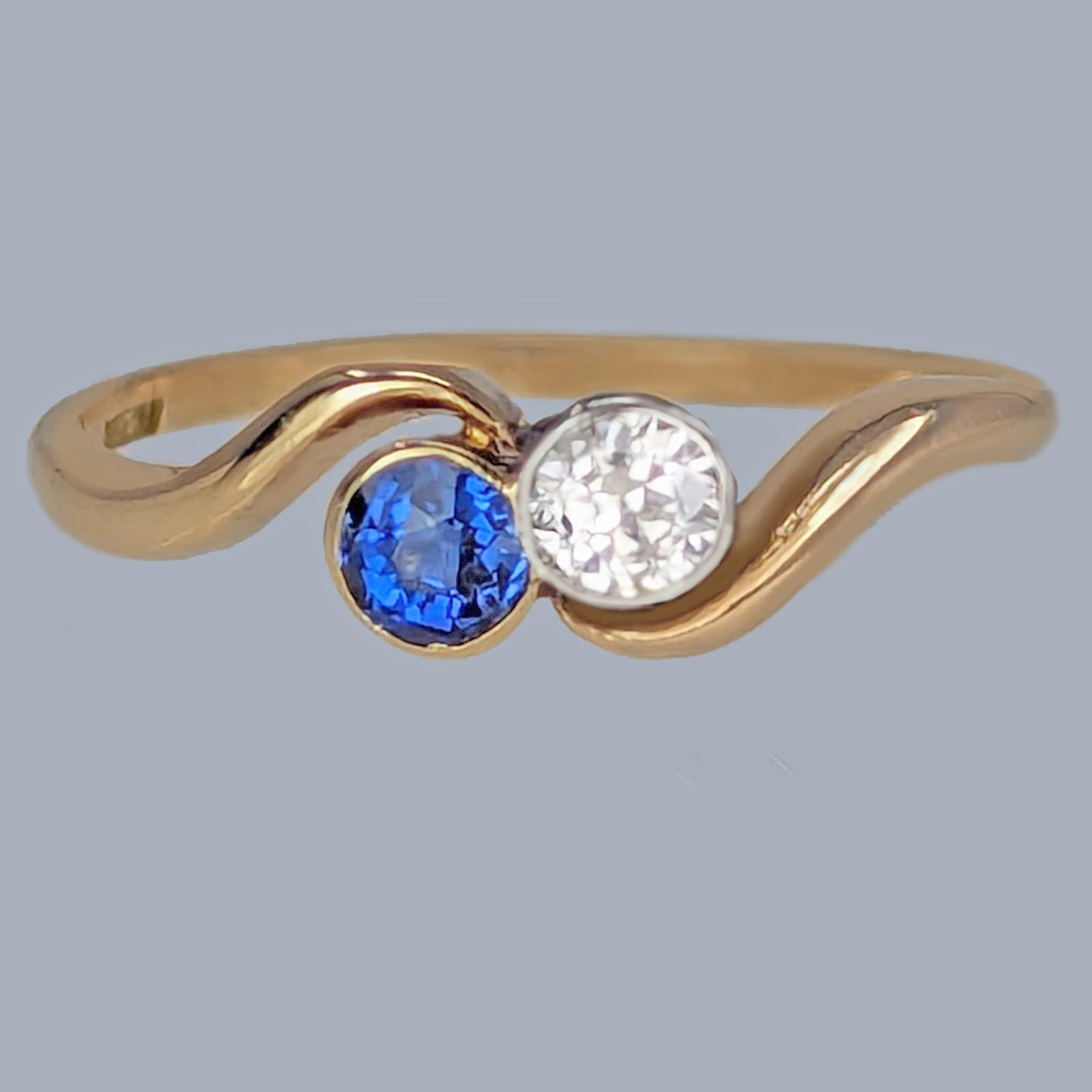 Antique Diamond and Sapphire Twist Ring 18ct Gold Edwardian / Art Deco Crossover Ring