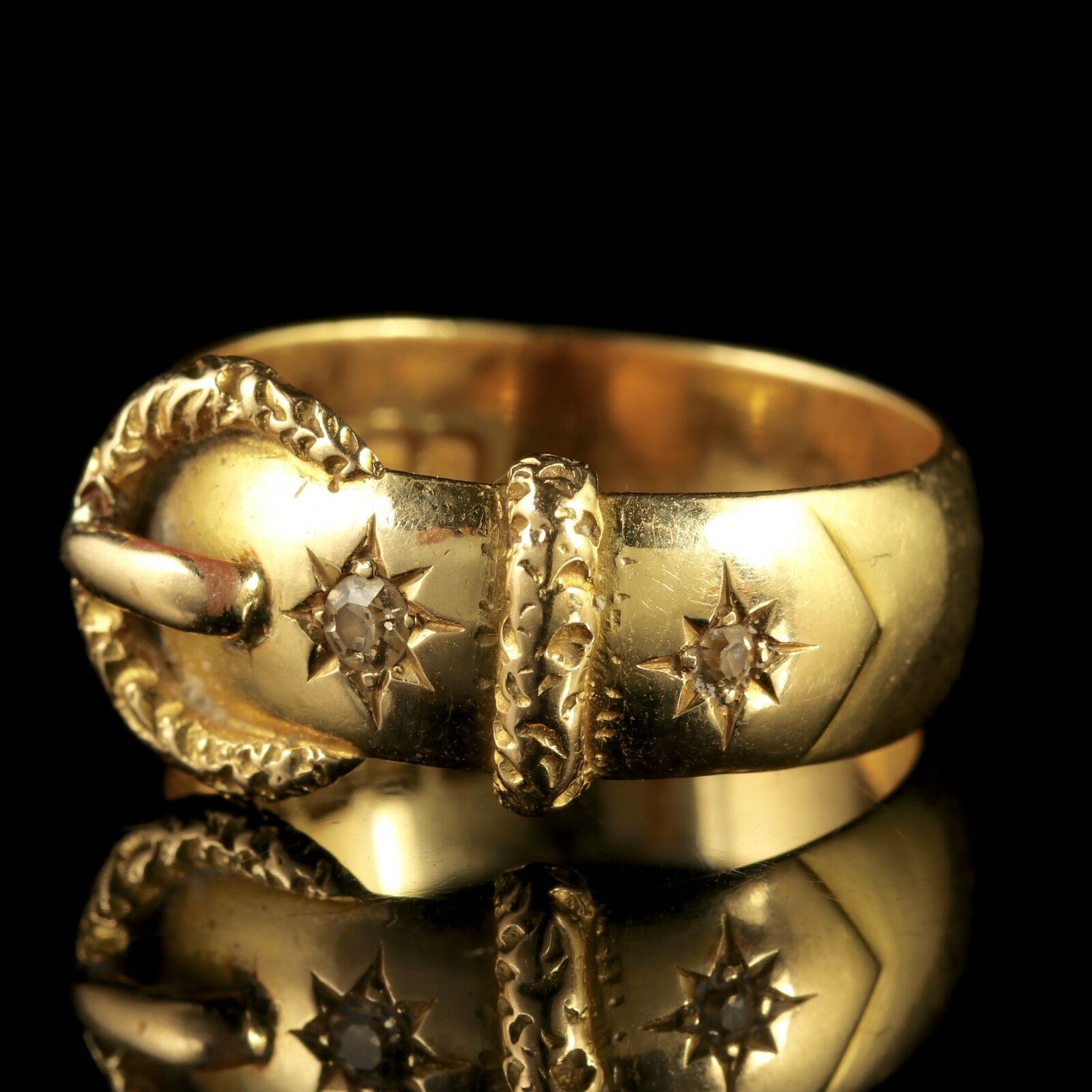 Antique Diamond Buckle Ring 18ct Gold Dated London 1915 Wedding Ring