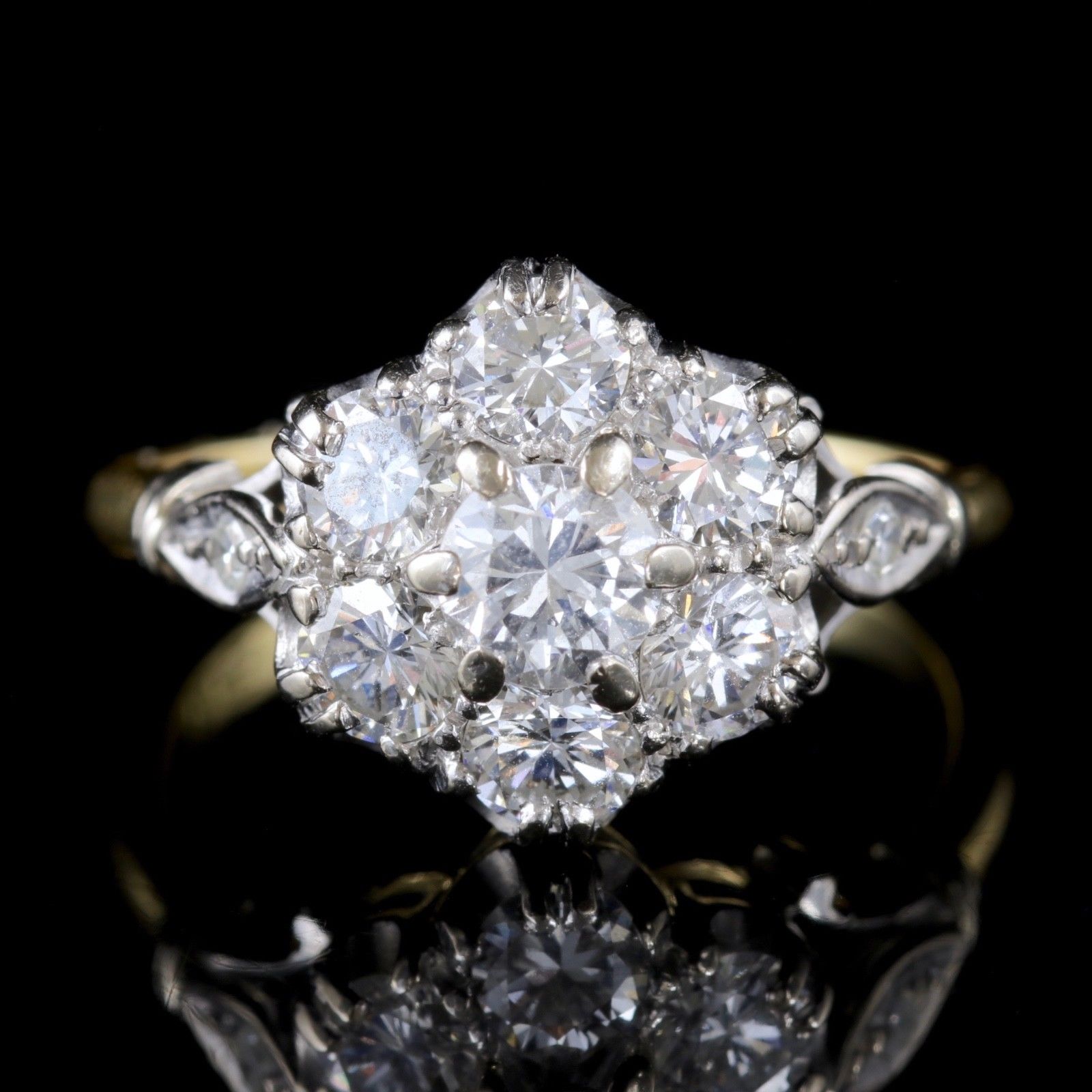 Antique Diamond Cluster Ring 18ct Gold Platinum c.1915