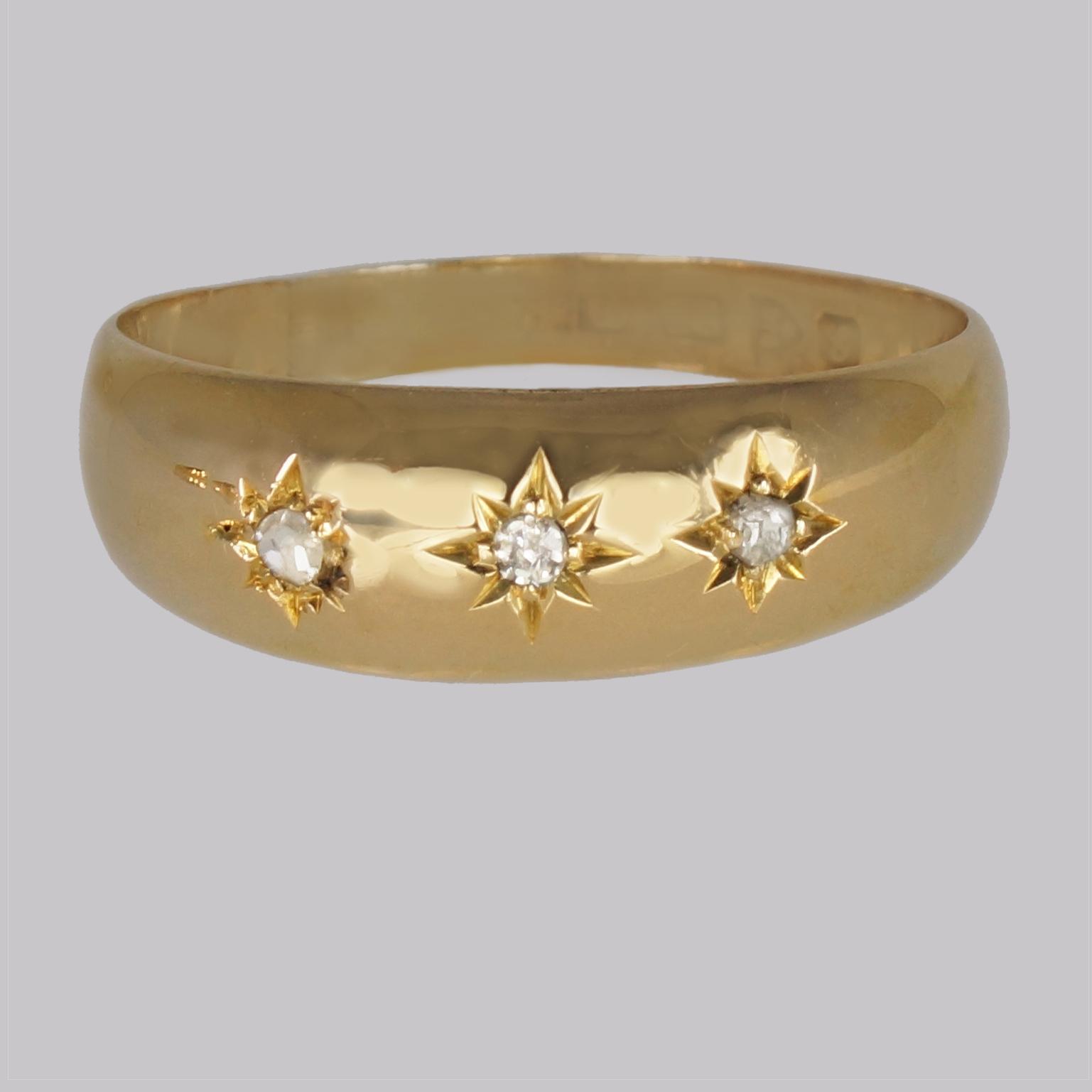 Antique Diamond Gypsy Ring 18ct Gold Trilogy Ring Hallmarked Chester 1907
