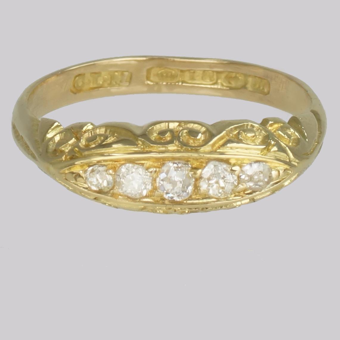 Antique Diamond Navette Ring Five Stone Half Hoop Ring Hallmarked 18ct Gold Birmingham 1911