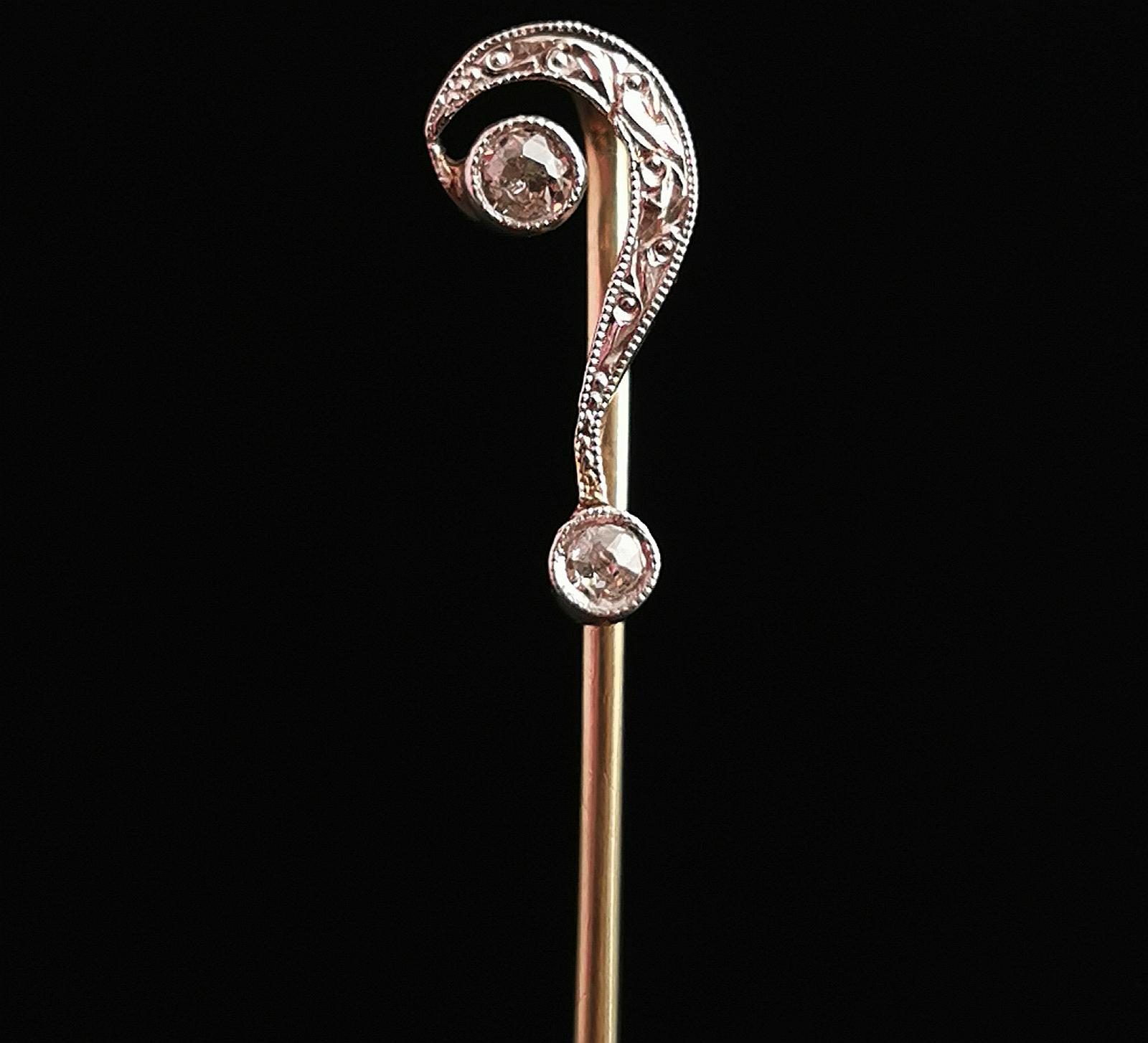 Antique Diamond Question Mark Stick Pin, 9ct Gold & Platinum