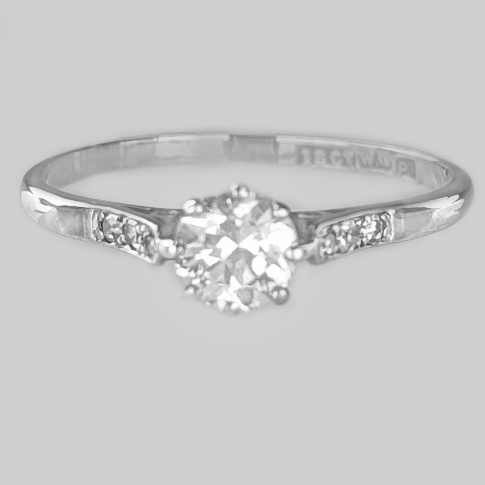 Antique Diamond Solitaire 18ct White Gold & Platinum Edwardian Engagement Ring