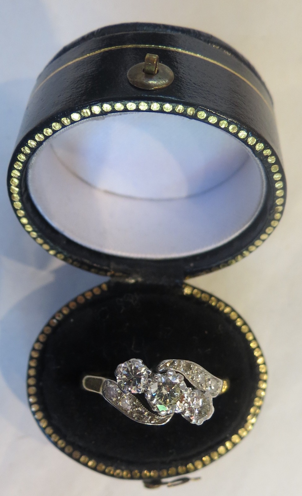 Antique Diamond Three-Stone Crossover Ring  in 18ct Gold (1 of 11)