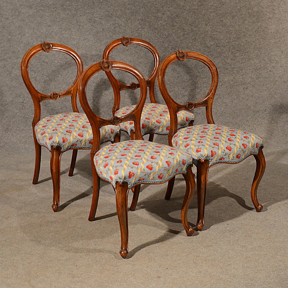 Antique Dining Chairs Walnut Balloon Back Tapestry Needlepoint English c.1850 (1 of 1)