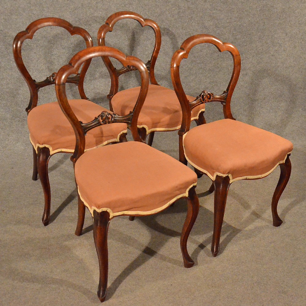 Antique Dining Chairs Walnut Balloon Buckle Back & Cabriole Leg Victorian c.1840 (1 of 1)