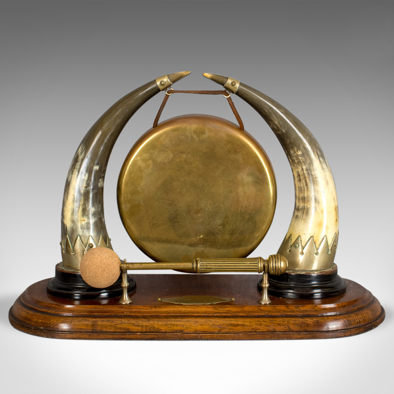 Antique Dinner Gong, English, Edwardian, Table, Oak Plinth c.1910
